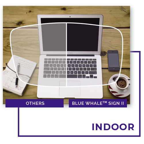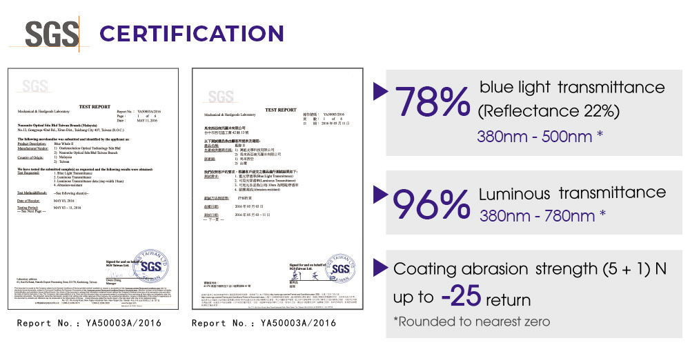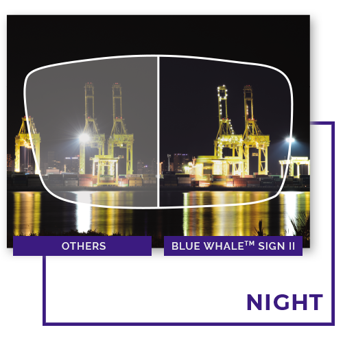 Blue Whale™ Sign II is a super anti-blue ray lens with a unique 18-layer coating. It not only protects from harmful blue light 400nm - 500nm (especially LED lighting) but also reduces glare to relieve visual fatigue. This will greatly enhance the lens transmittance and provide user with an unprecedented healthy visual experience.