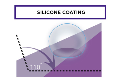 Silicone super splash coating will reduce the surface contact angle, which will increase the smoothness of the surface to enable easy cleaning of any dirt particles, water contact angle and any oil residue.