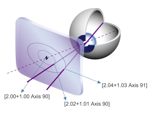 After entering the values of different frame parameters, computer prescription is then automatically calcuated to obtain the ideal lens thickness